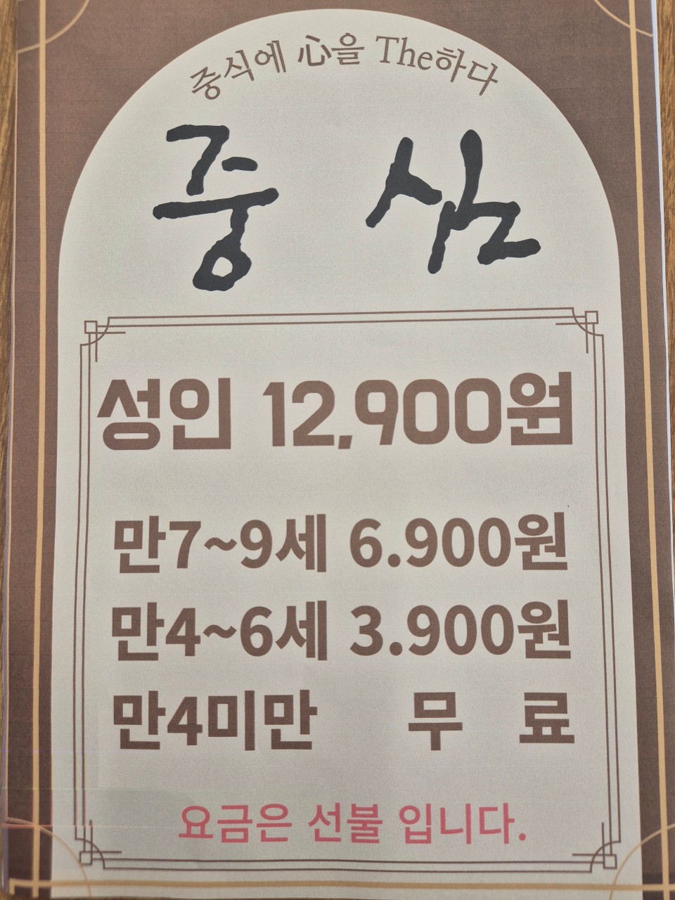 요금 : 중식 뷔페 12,900원 / 만4세미만 무료 / 만4-6세 3,900원 / 만7-9세 : 6,900원